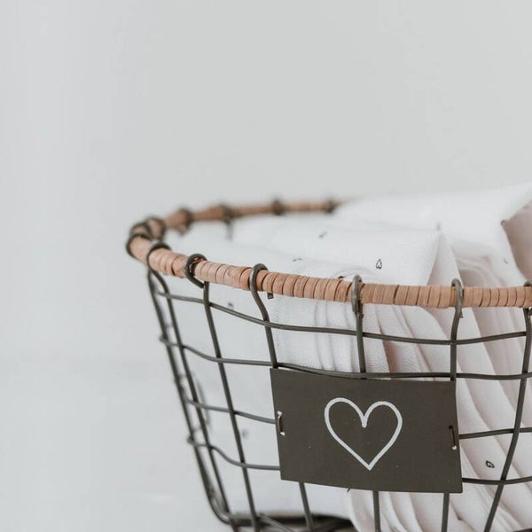 Dit maakt het opbergen en sorteren echt leuk - je kunt onze draadmand hart voor elke mogelijkheid gebruiken. Of het nu voor je spullen is, voor handdoeken in de gastenbadkamer of voor je kleine dingen die niet meer mogen rondvliegen! Al onze manden zijn liefdevol met de hand gemaakt. Het contrast tussen het metaal en de rand van natuurlijke houtvezel geeft ze net dat beetje extra. Het kleine, liefdevol vormgegeven hartje aan de voorkant rondt onze draadmand af en maakt hem tot een absolute favoriet.